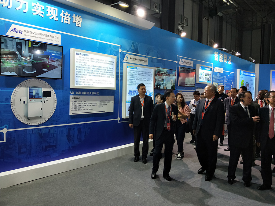 Während der Ausstellung besuchte eine Gruppe von Führungskräften auf Provinzebene in der Provinz Guangdong und auf Gemeindeebene in Dongguan City das Ausstellungsgelände, tauschte sich mit den Mitarbeitern von Anda Automation aus und hörte sich eine ausführliche Vorstellung der wissenschaftlichen Forschungsarbeit von Anda Automation an , Entwicklungsplanung und Feldausrüstung , Anerkennung der Innovationskraft und des Fertigungskonzepts von Anda Automation.