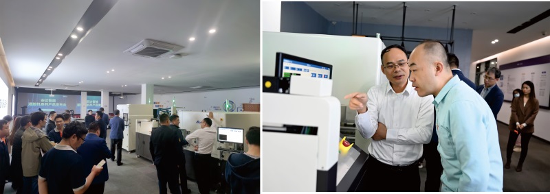 随后,观众们观摩了会议现场陈列的三大灌胶机系列产品:真空灌胶机(在线式/离线式)、常压灌胶机(在线式/半自动一体机)和备料机(离线式),并现场探讨了行业发展,产品性能及技术创新,刘董对产品团队的努力表示赞赏,并为他们点赞加油,激励团队继续保持创新精神,为安达智能产品家族的繁荣发展贡献力量。